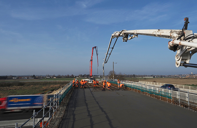 La construction des ouvrages se poursuit : après la construction des piles et culées et la pose des poutres, les premiers tabliers sont bétonnés. Les nouveaux ponts prennent forme et seront mis en service à l’été 2020.