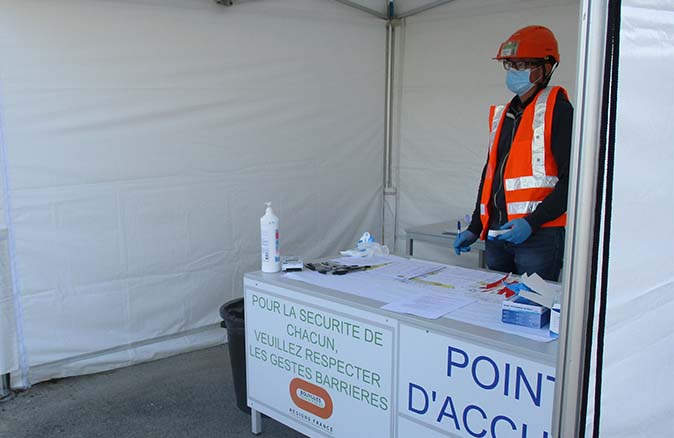 Des décalages de prises de poste sont mis en place pour éviter le regroupement dans les vestiaires et dans les réfectoires notamment. Des installations provisoires type barnum ont été installées afin d’augmenter la taille des réfectoires et ainsi de respecter les mesures de distanciation sociale et garantir la santé du personnel du site.
