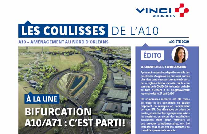 Au mois de juillet, l’ensemble des riverains et des communes concernés par l’aménagement de l’A10 au nord d’Orléans a été destinataire de la lettre d’information « Les coulisses de l’A10 ». Ce troisième numéro est consacré à la phase la plus complexe du chantier : la reconfiguration de la bifurcation A10/A71.