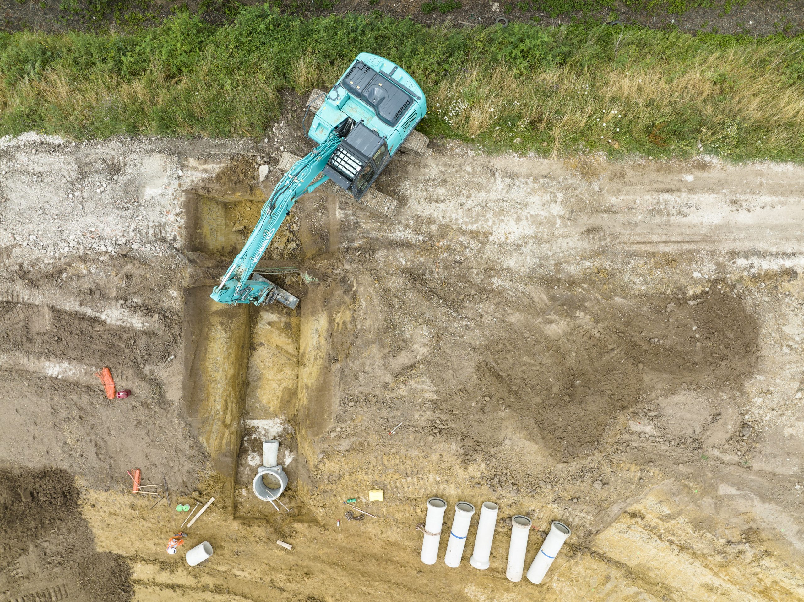 Les équipes travaux réalisent à l’été 2022 l’aménagement de la nouvelle zone de compensation, en amont de l’autoroute. Celle-ci est aménagée sur un terrain agricole qui est décaissé de plusieurs mètres. Au préalable, les couches arables de surface sont soigneusement décapées et stockées afin d’être ensuite remises en place de sorte qu’une fois réaménagé, le terrain puisse être restitué à l’agriculture.