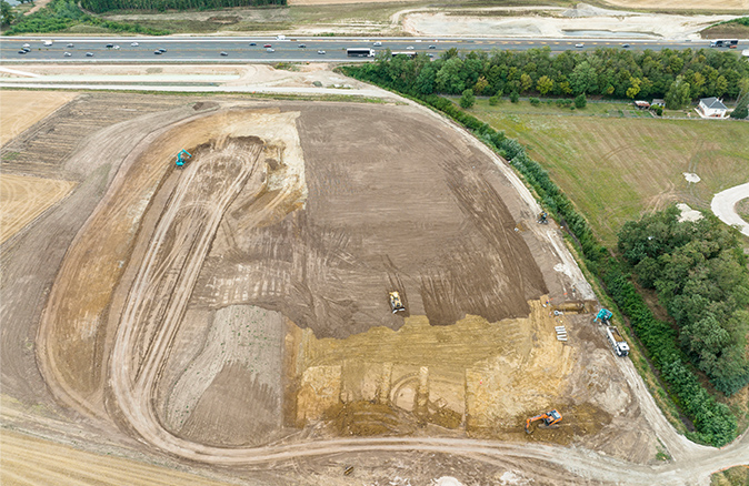 Les équipes travaux réalisent à l’été 2022 l’aménagement de la nouvelle zone de compensation, en amont de l’autoroute. Celle-ci est aménagée sur un terrain agricole qui est décaissé de plusieurs mètres. Au préalable, les couches arables de surface sont soigneusement décapées et stockées afin d’être ensuite remises en place de sorte qu’une fois réaménagé, le terrain puisse être restitué à l’agriculture.