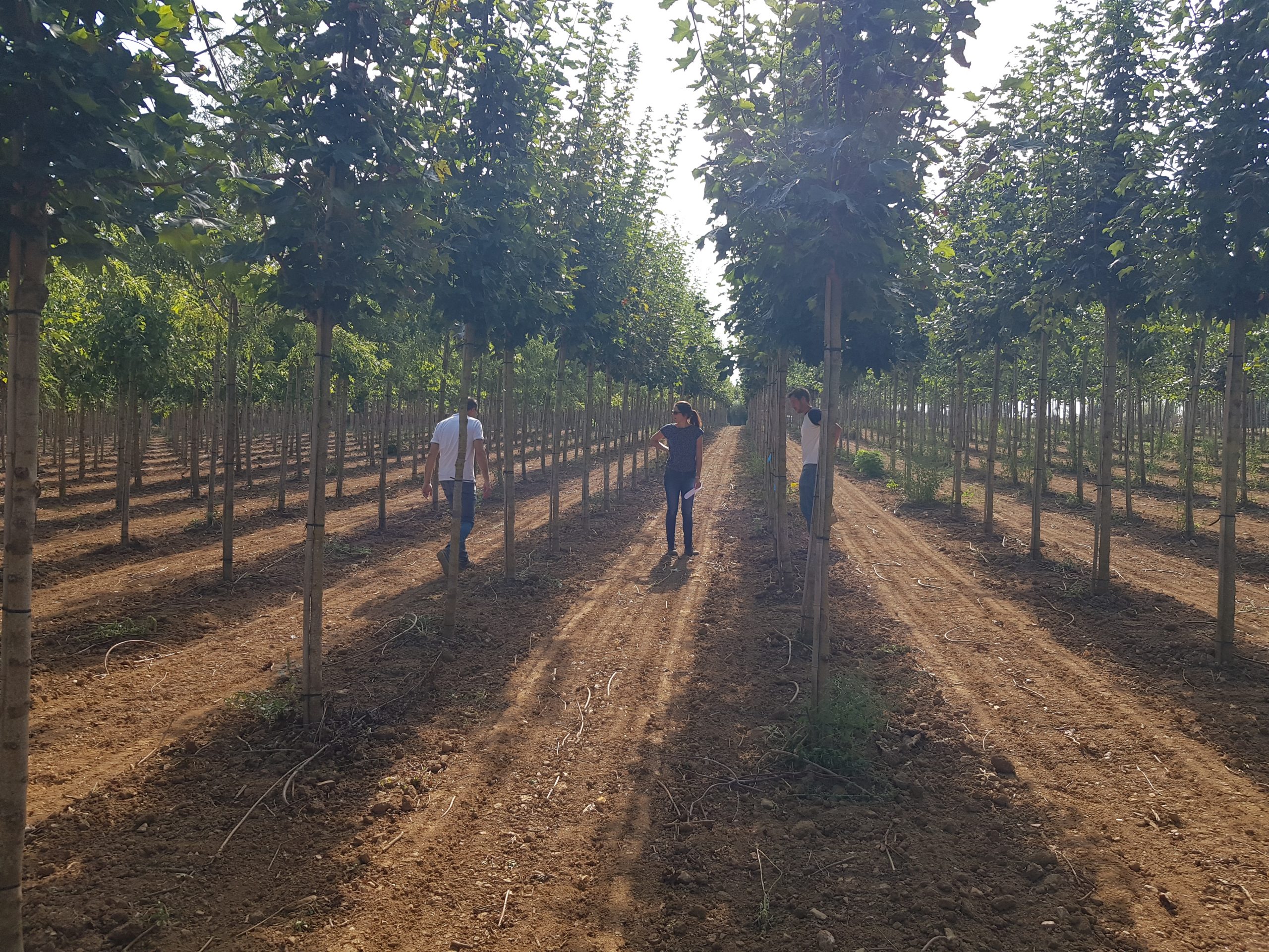 Accompagnée de la chef de projet, l’équipe du chantier « paysage » s’est rendue près d’Angers pour visiter la pépinière Chauviré. Cette entreprise familiale de 460 ha fait de l’élevage, c’est-à-dire qu’elle met en culture de jeunes plants qui deviendront ensuite des arbres tiges de gros calibre.