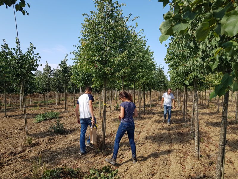 L’après-midi, l’équipe s’est rendue à la pépinière Fraxinus pour voir l’évolution des jeunes plants et contrôler leur bonne santé. C’est à cette période, lorsque les plants ont encore leurs feuilles (avant le repos végétatif) qu’il est possible de contrôler leur état sanitaire.