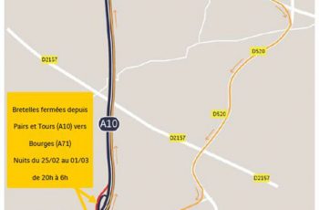 En savoir plusEn prévision des travaux d’aménagement de la bifurcation A10/A71, certaines bretelles seront ponctuellement fermées du 25 février au 1er mars, uniquement la nuit, pour limiter la gêne à la circulation en journée.